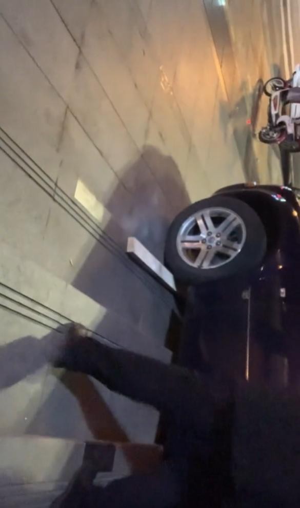 51岁王茜华深夜开豪车出事!车冲上台阶被卡住,情况紧急多人帮忙