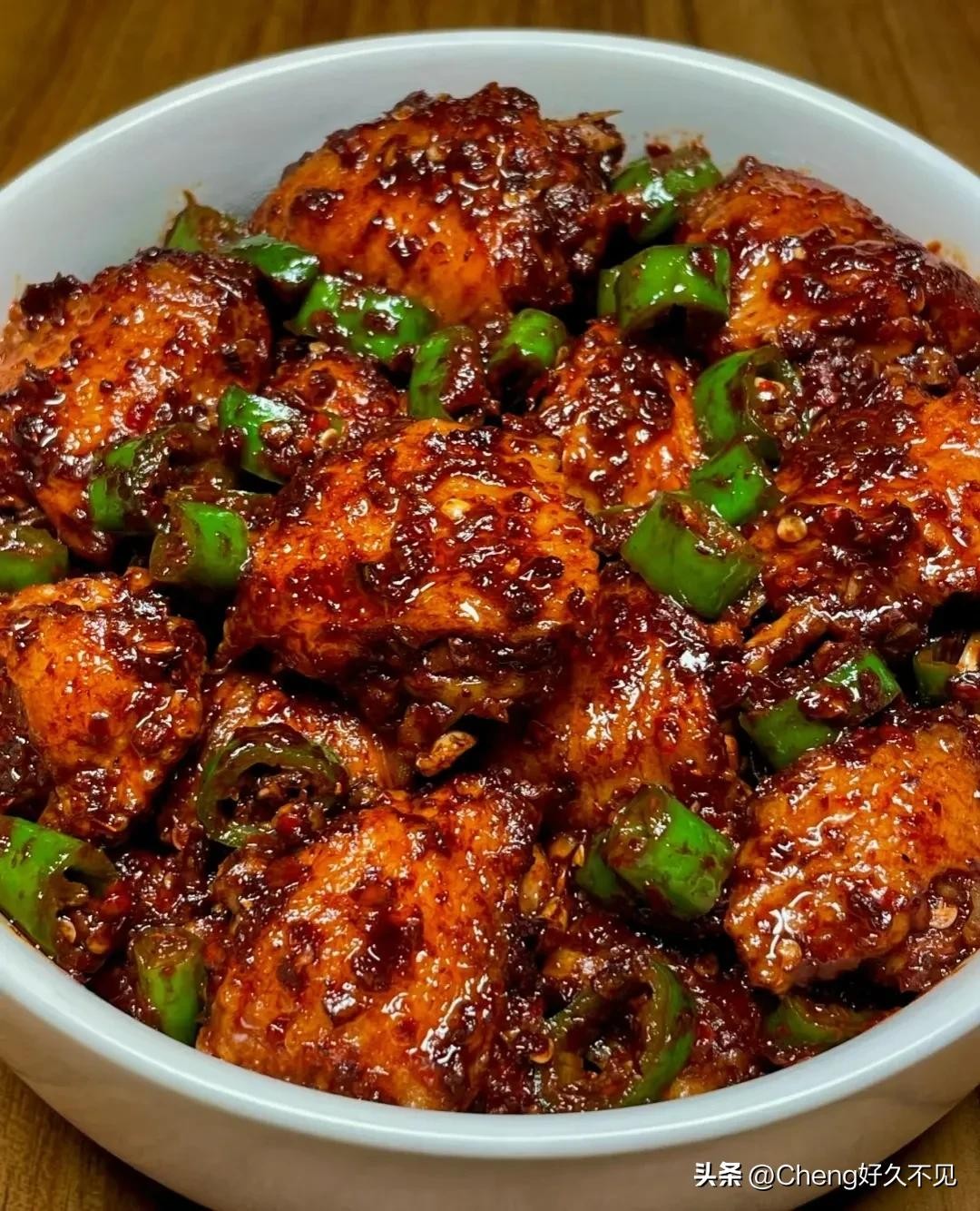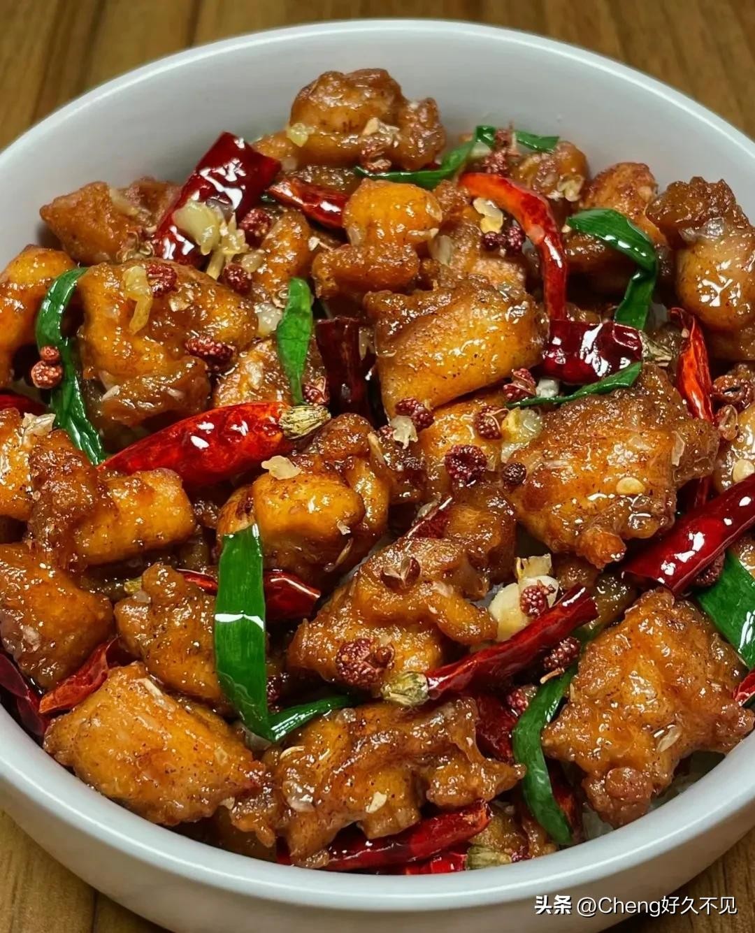 辣子鸡,四川的经典美食,辣得你舌头都要飞起来了!每一口都是满满的鸡肉和辣椒,让你吃得满足又过瘾。