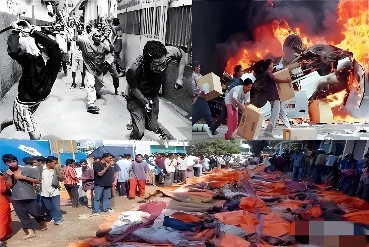 于是暴徒们彻底疯狂了,甚至不少人振臂高呼“宁可印尼经济倒退10年,也要把华人赶出印尼!”的口号冲向华人区,肆无忌惮地烧杀劫掠,可以说这是印尼华人最黑暗的时刻。