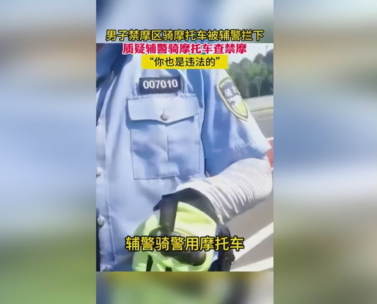 "你也闯禁",这是网友们对辅警的质疑。他们认为辅警骑警务摩托车违法了,因为辅警并没有执行人民警察的职责,没有得到应有的授权。这个问题引发了大家对辅警权力范围和职责的讨论。