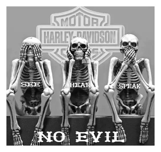▲ 这是网上流传的哈雷的No Evil More海报。哈雷是激情、自由和狂热,是上世纪60年代爱摇滚的嬉皮士,是甲壳虫时期“爱与和平”的代言人。在美国,整个20世纪下半叶甚至被称为“哈雷时代”。当年在英国读书的时候,学校旁边就有一个哈雷俱乐部,经常会看到一群酷酷的车友聚会于此,也总能听到哈雷大摩托轰隆隆的马达声。