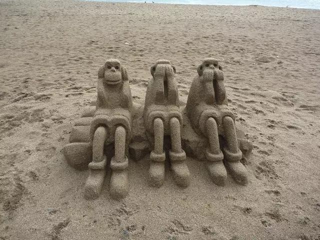 ▲ 在北京的欢乐谷,你也可以找到“不看,不听,不说”的雕像。