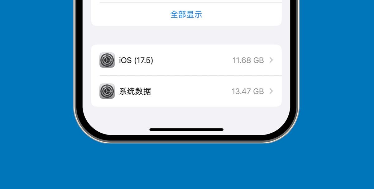就拿iPhone来说,最新版本的iOS 17.5的系统容量达到了11.68GB,而系统数据则超过了13GB,系统部分的总占用将近25GB。