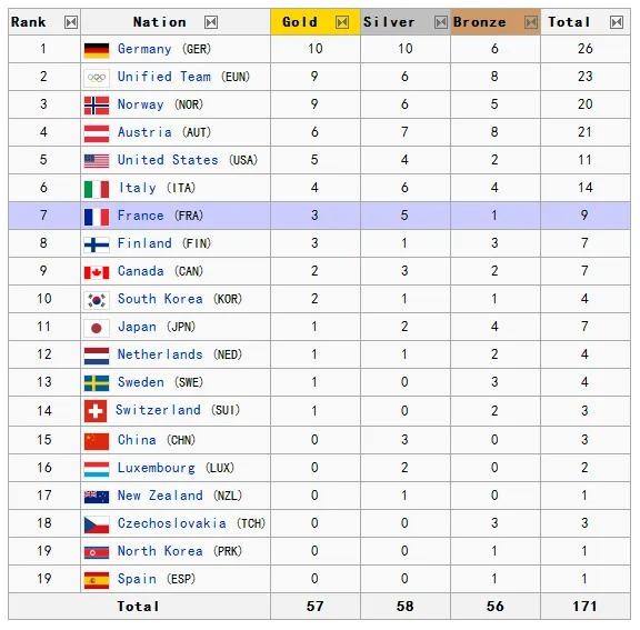1.1992年法国阿尔贝维尔冬奥会,中国获3银,排在奖牌榜第十五位,叶乔波独获两银,来自速度滑冰女子500米和1000米;