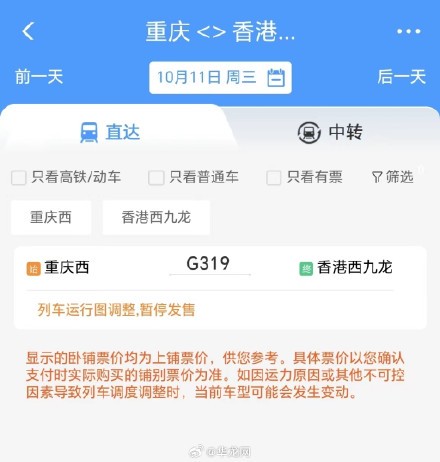 快54分钟 10月11日起重庆到广州高铁最快5小时43分飙拢