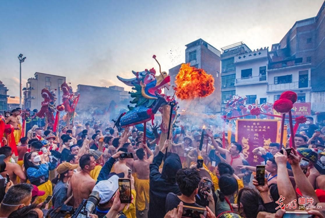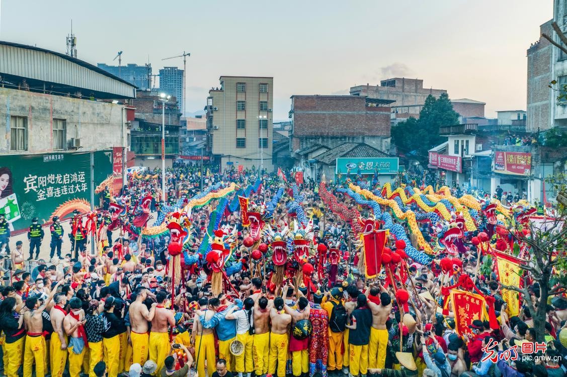2024年2月20日,农历正月十一,广西南宁市宾阳县举办盛大的“炮龙节”,吸引众多游客。宾阳炮龙文化历史悠久、源远流长,是壮汉民族文化交融的结晶。该节庆荣获国家级非遗和“中国最佳非遗节庆”称号。(曾祥忠摄/光明图片)