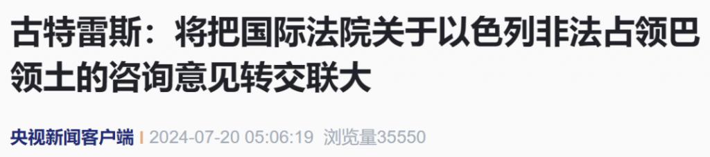 当地时间 7 月 19 日,在国际法院发表一项咨询意见,敦促以色列尽快结束对巴勒斯坦领土的非法占领后,古特雷斯发表声明,称将立即将咨询意见转交联合国大会,联大将决定如何处理此事。