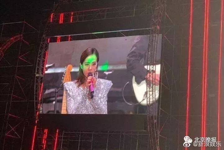 5月25日晚,蔡依林在台上演唱,她的脸上不时晃过绿色的光束。一开始,蔡依林还强睁着眼躲闪,但后来,光照在脸上时间过长,导致她不得不闭着眼睛唱歌。