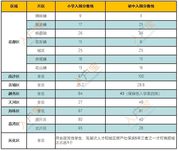 2.番禺区、花都区、南沙区、天河区无入围名单,在积分资格名单内的都可填报志愿,此表以对应片区的录取最低分作为参考;