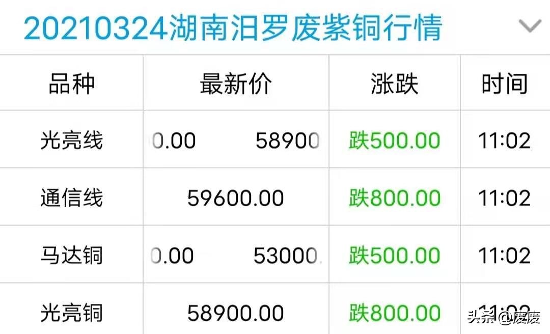 废废|废紫铜价格翻绿,最高跌800元\吨