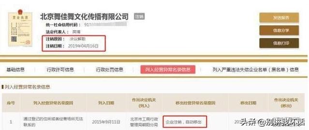 我们可以看到上面的公告发表时间是2019年4月22日,而在同年4月17日,高博创办的舞佳舞公司就已经注销了。这,难道是要跑路了吗?