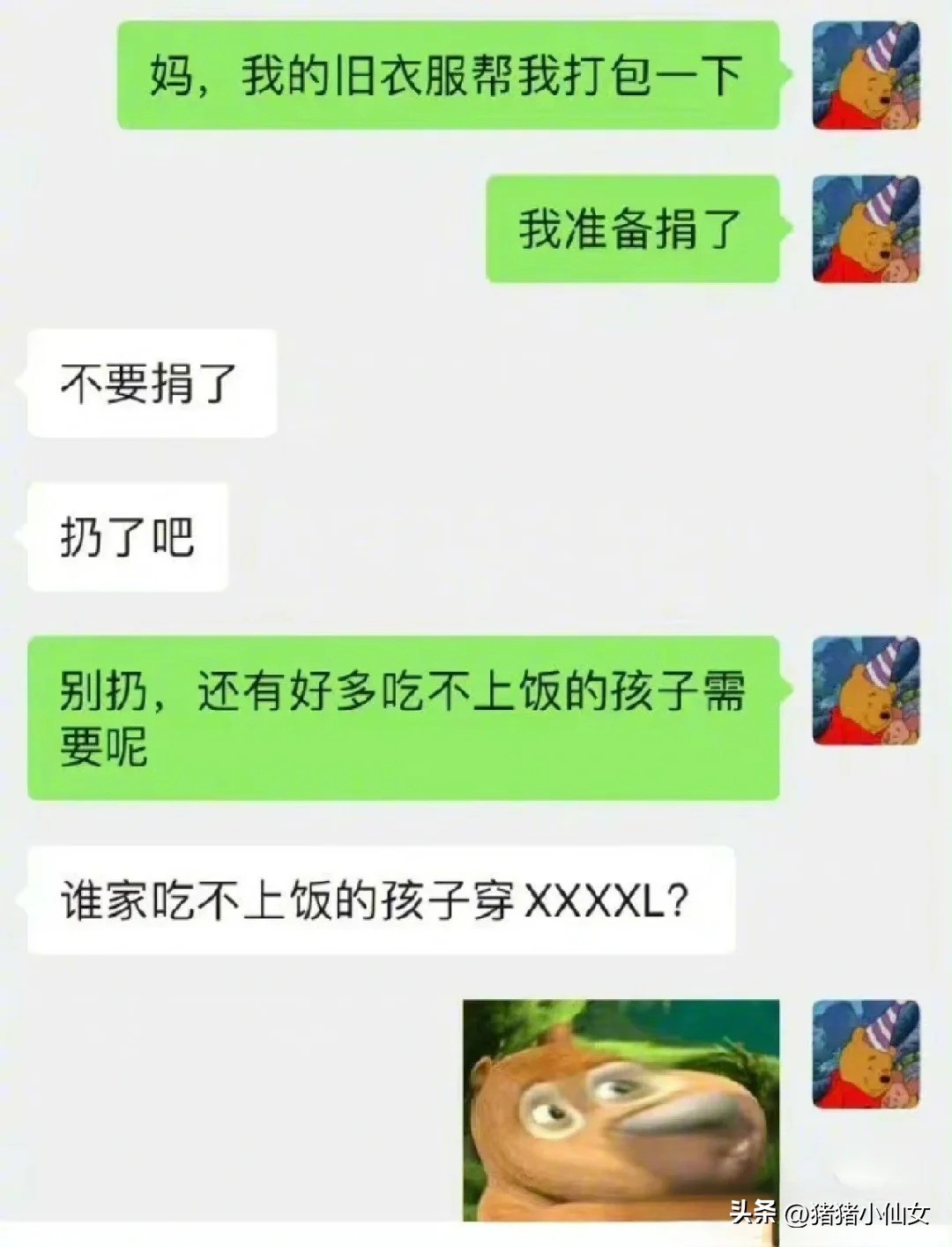 谁家吃不上饭的孩子穿XXXXL,有爱心是好的,但是要考虑一下自身,太逗了,哈哈~