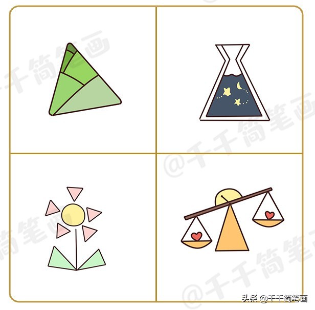 除了这些小动物,生活中也有很多常见花花草草和生活用品也是可以用三角形画出来的哟