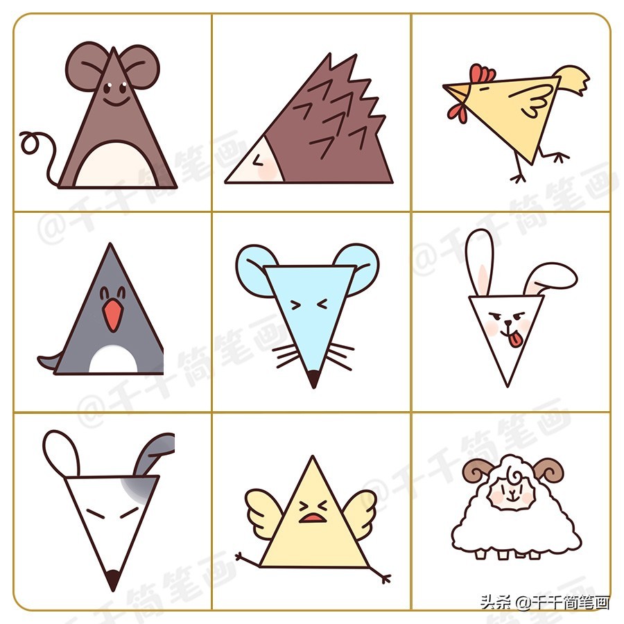 只用三角形就画出99个可爱小动物简笔画,快为孩子收藏起来吧