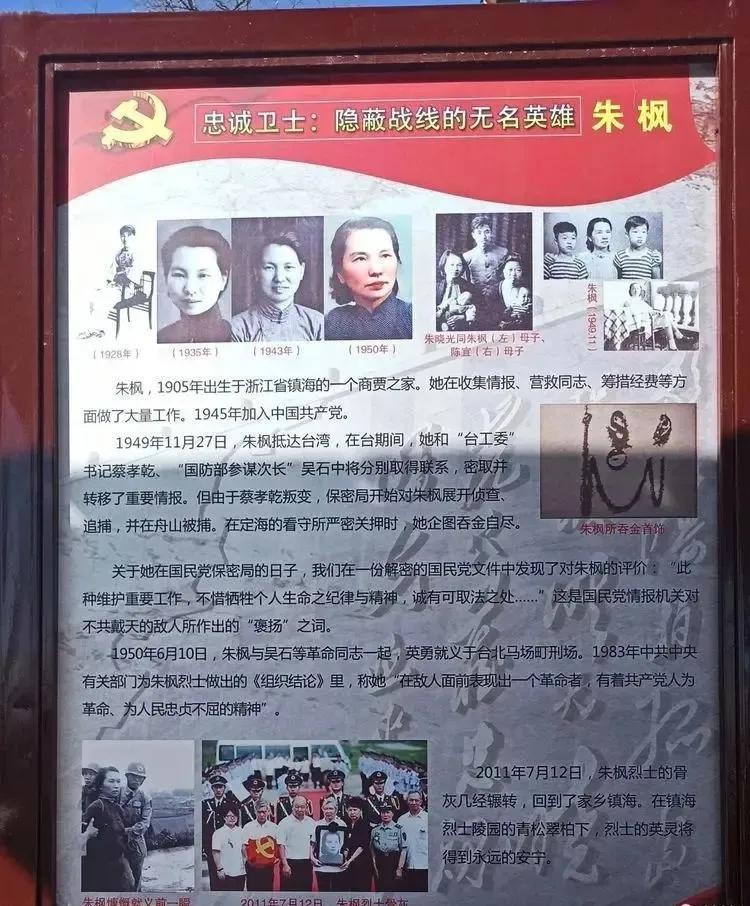 1949年10月,解放军攻打金门和舟山群岛一度不利。为尽快了解敌情变化,华东局决定派长期在上海、香港从事情报工作的女共产党员朱枫(1905—1950,又名朱谌之)赴台与吴石秘密联系,传递相关情报。