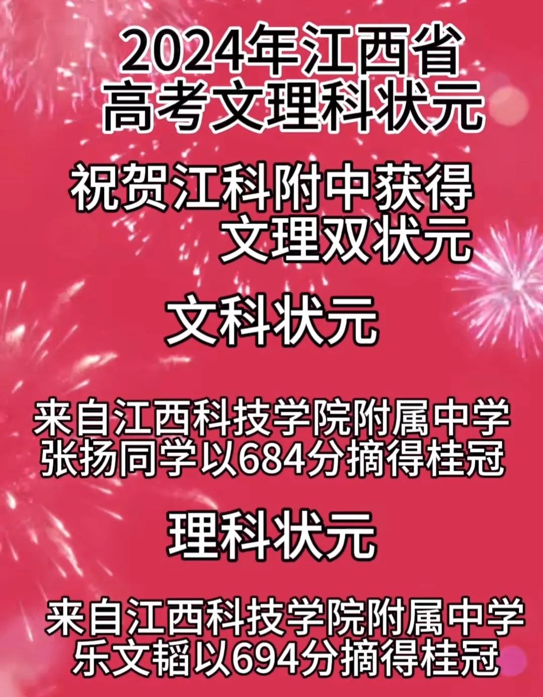 江西省2024年高考状元:文科状元684分,理科状元694分!