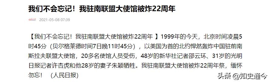 光明网在2021年5月28日关于《我们不会忘记!我驻南斯拉夫大使馆被炸22周年》报道