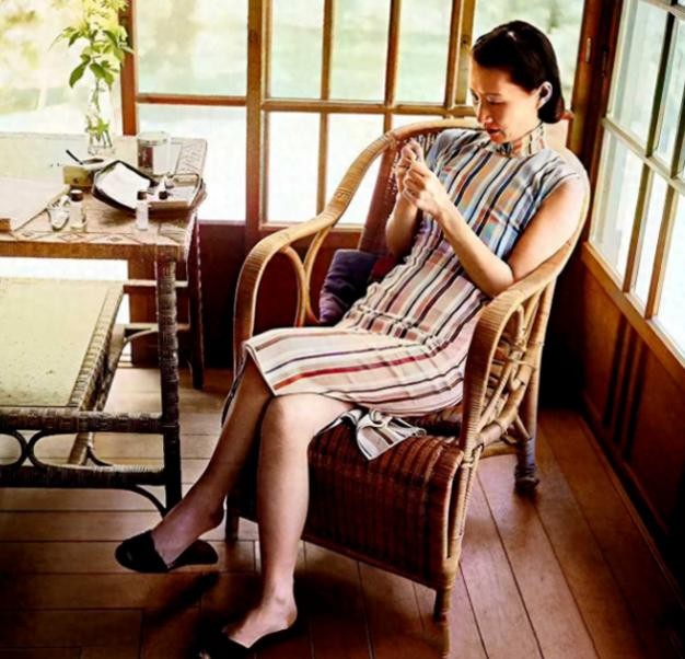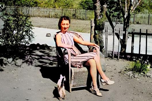 1955年,赵一荻在台湾的井上温泉住处拍摄了一张照片,此时已经是她陪伴被软禁的张学良的第15个年头了。照片中的赵一荻脚踩高跟鞋,身着一件线条优美的睡裙,正悠然自得地坐在椅子上涂抹着指甲。