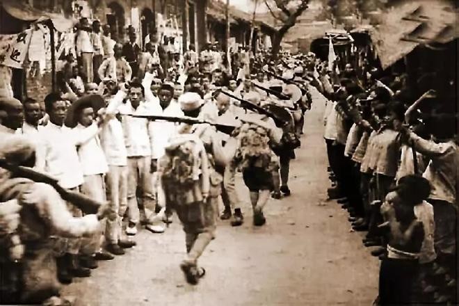 装备对比:脚蹬草鞋的士兵”与日军机械化部队的对比。