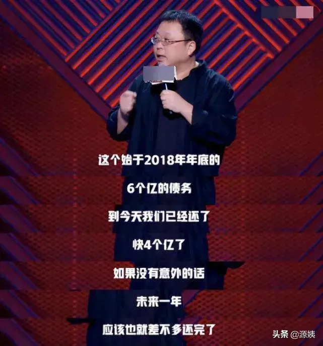 9月23日,罗永浩在《脱口秀大会》上说,自己2018年底创业失败,欠了6个亿的巨款,但至今已经还了4亿,没有意外的话,未来一年应该能还完。