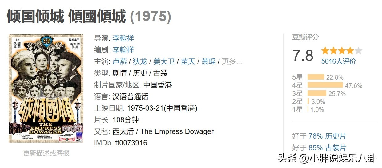 这部影片是李翰祥于1975年拍摄的一部清宫片,都知道他是邵氏的风月片舵主,但其对中国历史和传统文化的展现也极具造诣,之后的《垂帘听政》和《火烧圆明园》就是其集大成的作品。