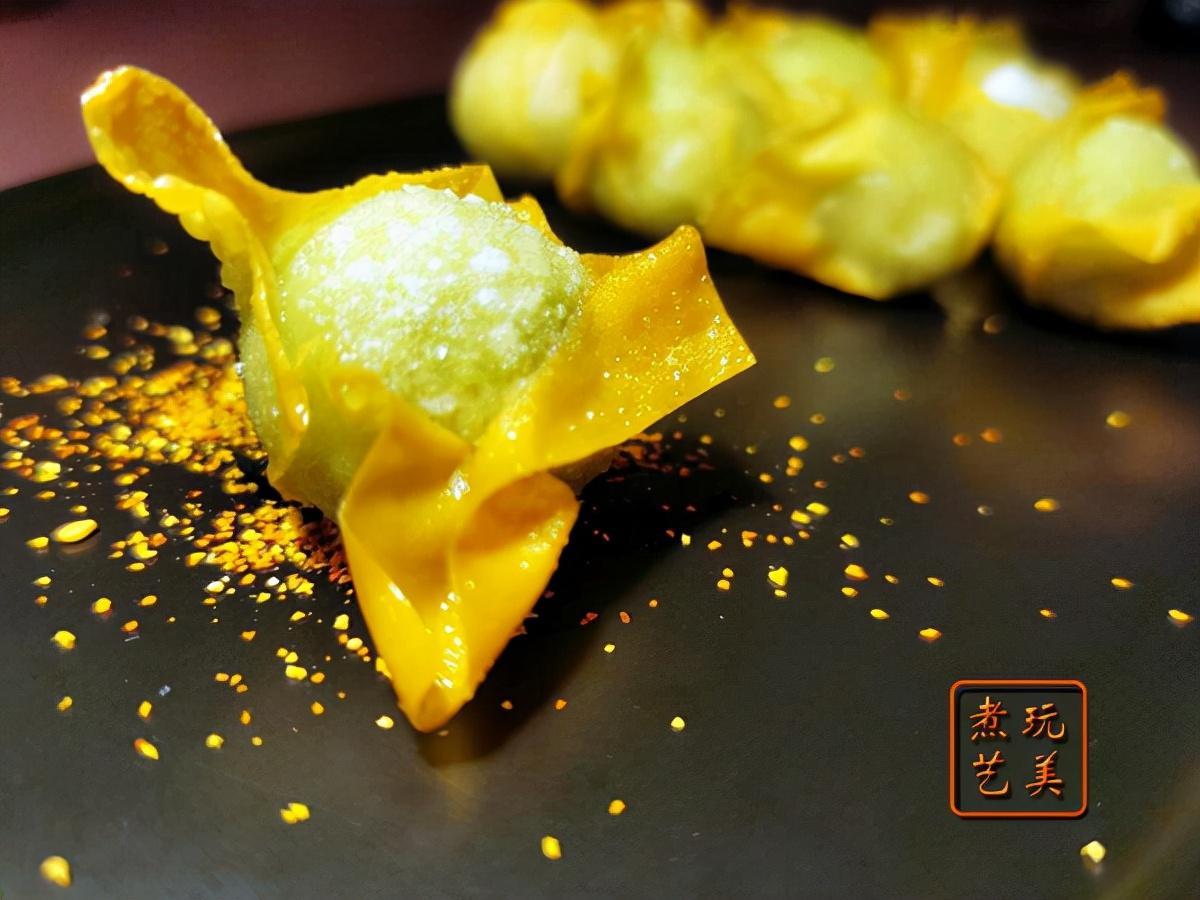 馄饨皮不包馄饨,因为太通俗做法,已撩不起这群“新人类” 的嗜好,用它包住汤圆,下油锅滚几圈,增加汤圆别致造型与脆度。