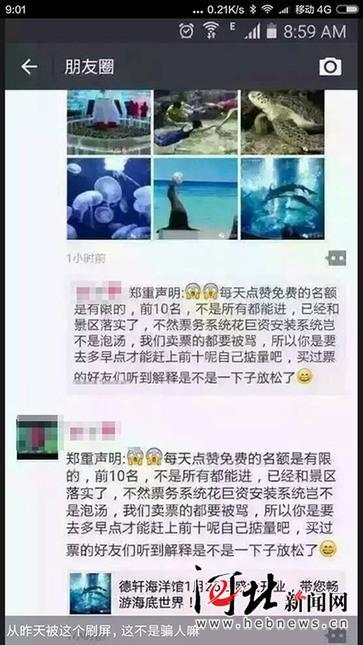保定某海洋馆集赞免门票 网友吐槽“太忽悠”