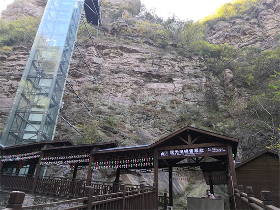 乘电梯可以直达第一道绝壁回廊,也就是比较低的那一道,要价20元,和楼房的电梯并无二致,只不过要掏钱。