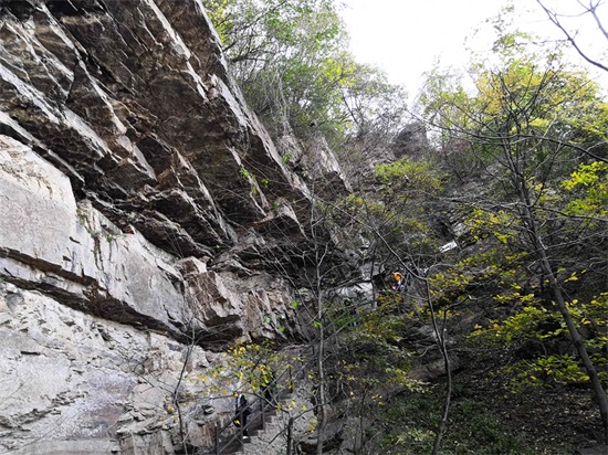 整个一圈走下来大约需用时三四个钟头,快接近起点的地方,是一处悬崖,悬崖上修了二处栈道,是为绝壁回廊一和二,它们是上下相通的。