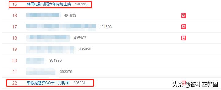 “韩国电影时隔六年内地上映”和“李栋旭智族GQ十二月封面”也成功登上了微博热搜榜单。