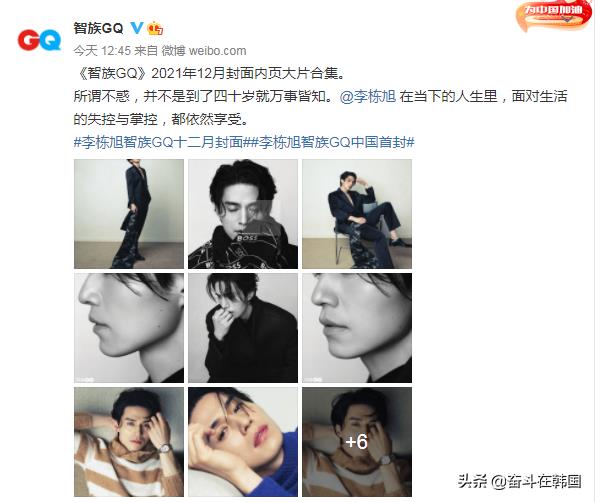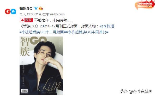 与此同时,《智族GQ》中国刊也于今日中午官宣了十二月刊的封面人物为韩国演员李栋旭。