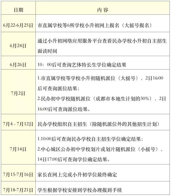 请家长们查收!2019成都小升初日程安排表出炉