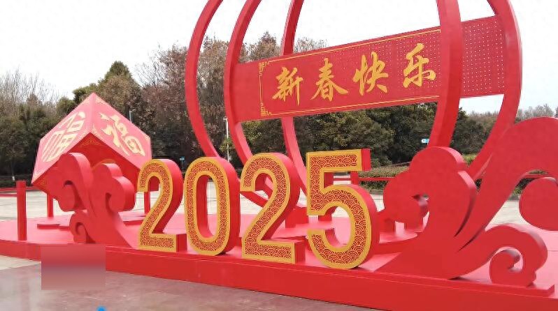 新年立牌以大红色为主色调,“新年快乐”的金色字牌与各种传统元素的图案相互呼应,设计独具匠心。此外,市区主要干道、中心广场以及城市出入口等区域,也布置了新年主题小品,悬挂了灯笼、中国结等,将喜庆祥和的过年氛围拉满。