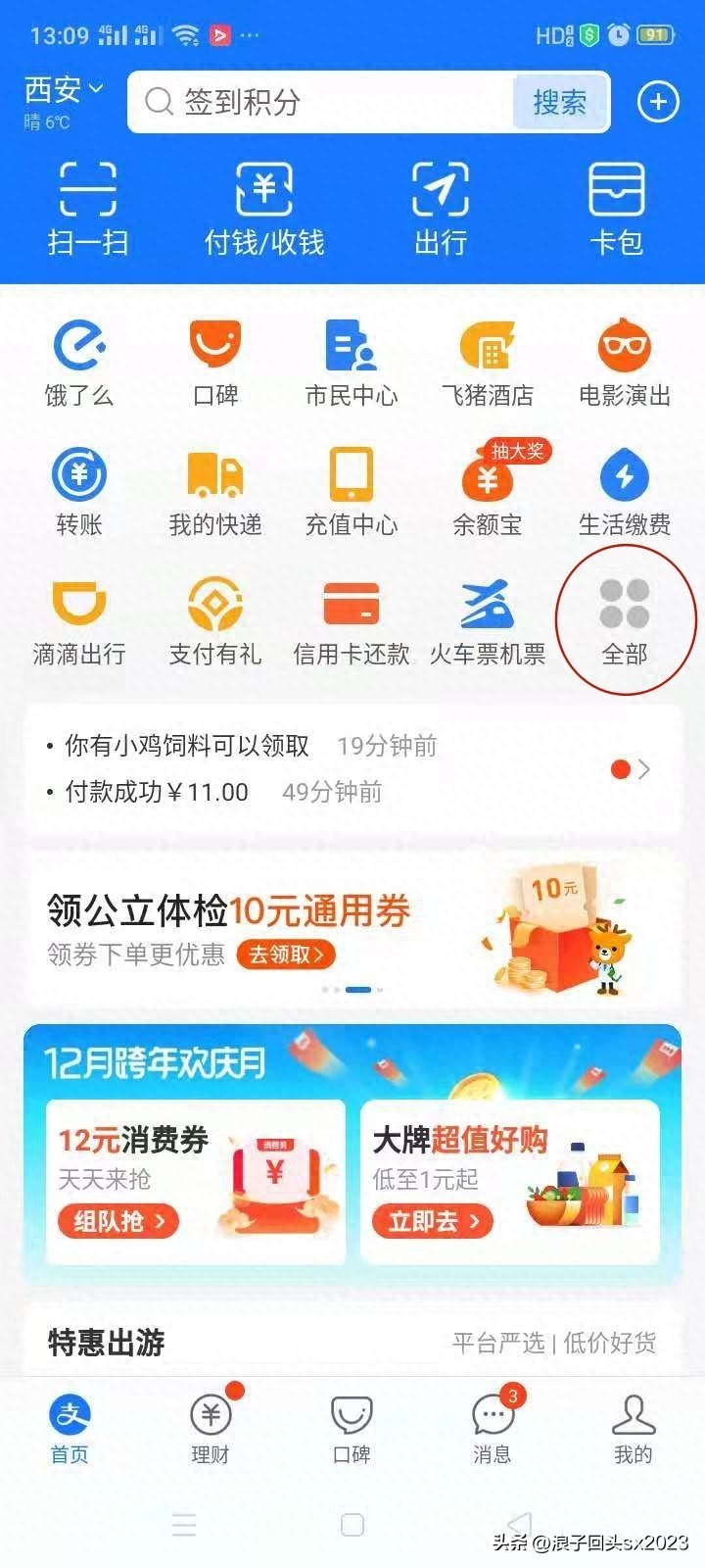 1、打开手机支付宝,点首页-全部;