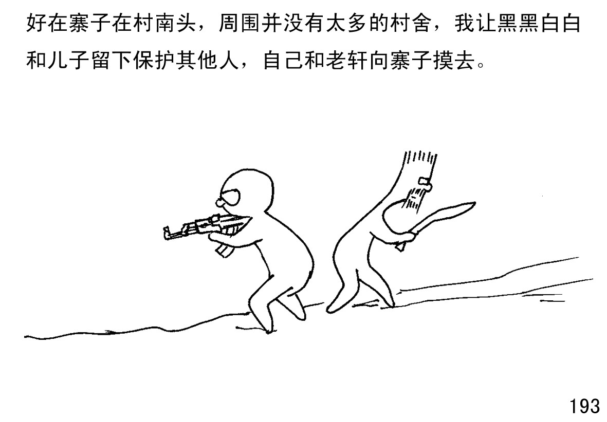 好在寨子在村南头,周围并没有太多的村舍,我让黑黑白白和儿子留下保护其他人,自己和老轩向寨子摸去。