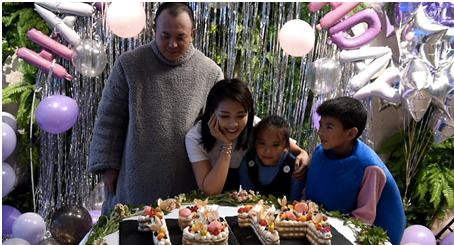 为了让这个生日更加令人难忘,王珂还绞心脑汁地将一双儿女“邮寄”到现场