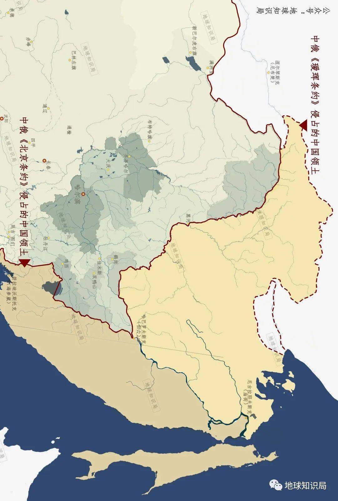 在第二次鸦片战争期间,沙俄趁火打劫,通过中俄《瑷珲条约》和《北京条约》割占了黑龙江以北、乌苏里江以东约100万平方千米左右的国土。