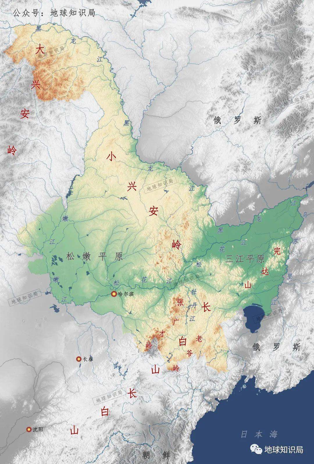 从西到东的大兴安岭 、小兴安岭、张广财岭、老爷岭和完达山是谓“五山”;包括嫩江、松花江等诸多支流河湖在内的广袤的黑龙江流域是谓“一水”;三江平原、松嫩平原循着松花江谷地的平原和草原牧场是谓“一草”,山地、台地、平原海拔高低形成“三分田”。