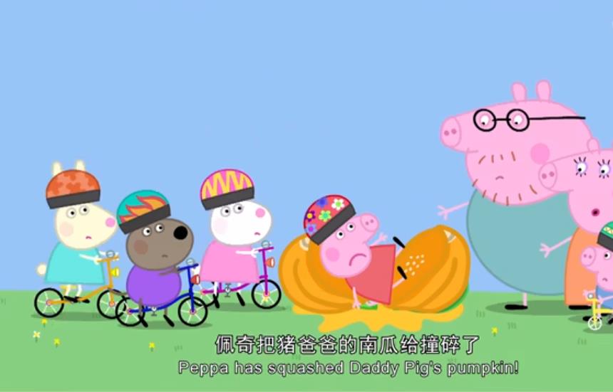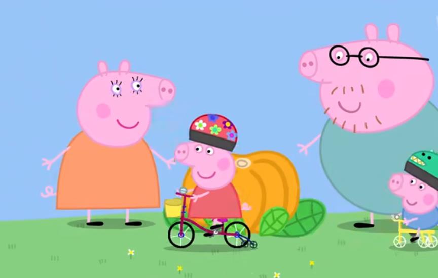 Peppa and her friends are racing to Daddy Pig's pumpkin! 佩奇和朋友们比赛谁能最快骑到南瓜那儿
