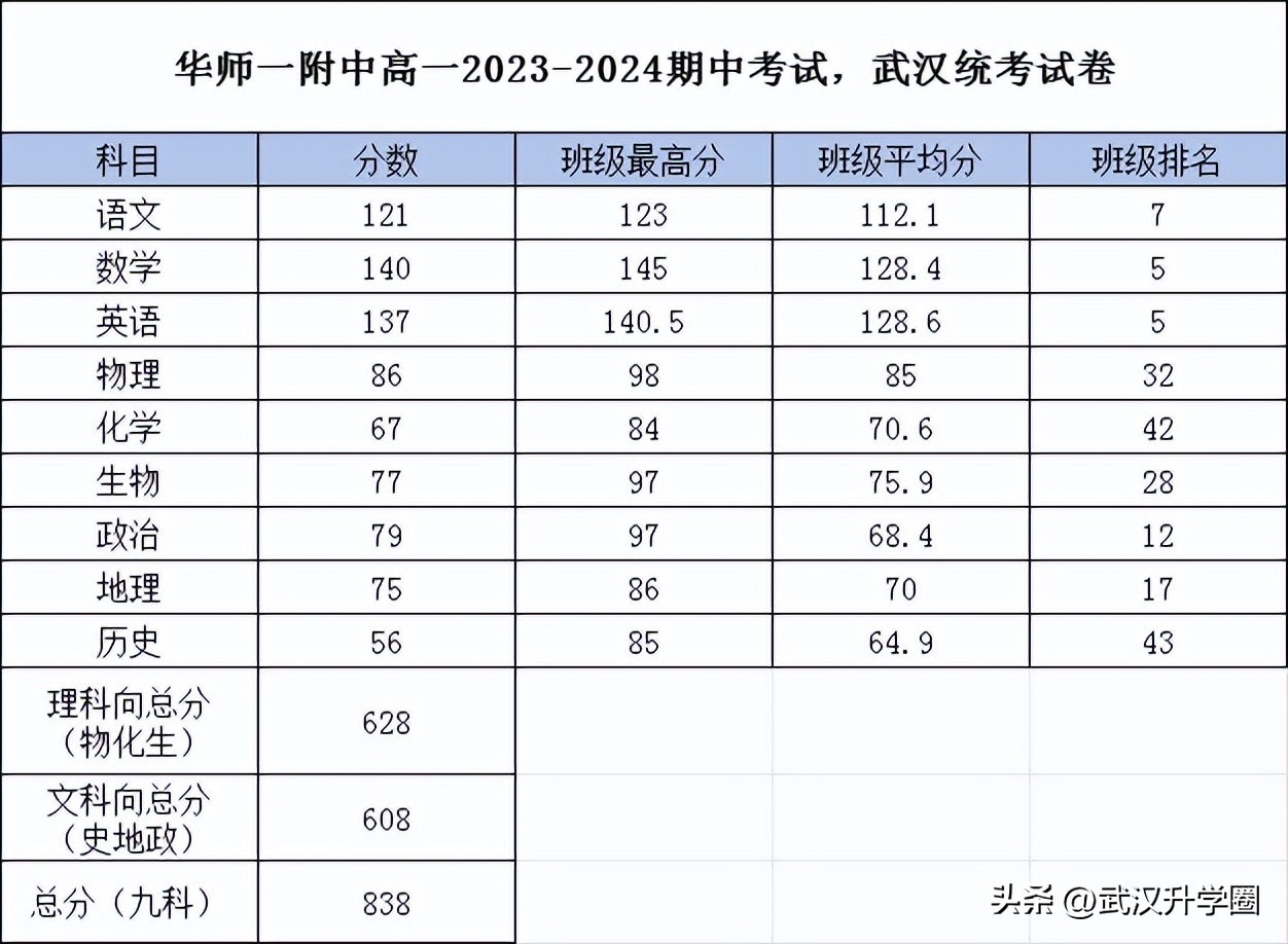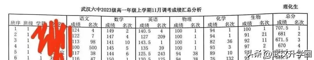 武汉市高一期中最高分908,部分高中600分以上人数公布!