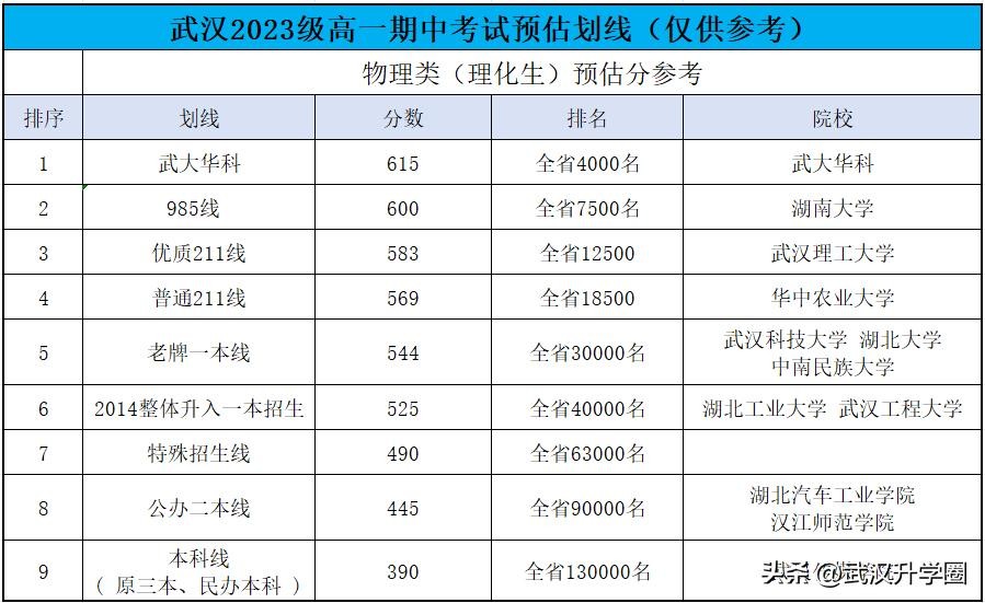 本次统考华师一600分以上457人、武汉二中600分以上250人、省实验600分以上270人、武汉三中600分以上160人、武汉六中600分以上106人。
