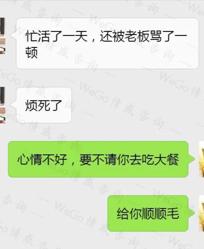这类回复容易博得会心一笑,忙也忙完了,被骂也骂过了,还能骂回去咋地?赶紧忘掉不愉快的事情,至少在今天的结尾留下快乐的回忆才是最重要的,没什么比干饭更能让人有劲的了。顺便对方还能吐槽发泄压力,你又多了个约出来的机会增进感情。