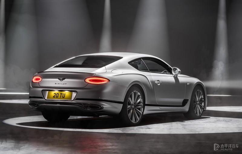 车尾部分变化则更为低调,椭圆形的精致尾灯与下方的穿孔套管设计的排气尾管可见宾利对细节极致追求。