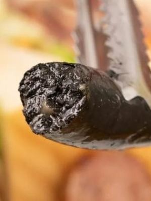 墨鱼烤肠的肉含量福跟飞鱼籽的一样,高达75%,也添加了少许淀粉。