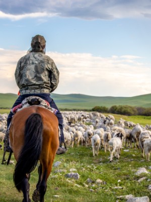 草原植物资源丰富,羊根本不用喂饲料,直接放养就行,吃得多、运动量大,肉质自然扎肥瘦有致。