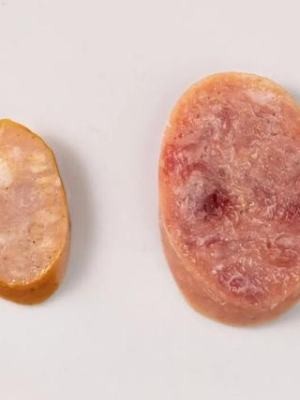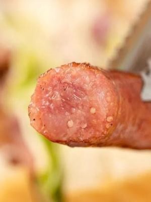 肉含量高达75%,切片后能看到绳子清晰的肉捞多海底纤维,肉感扎实,远不是超市淀粉肠可比的。