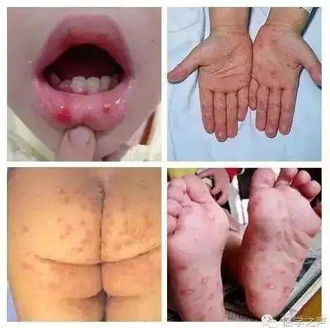 等到孩子口唇、手脚、屁屁出现疱疹或红色皮疹,家长们才会意识到不对劲。有些孩子的口腔粘膜还会有疱疹,疼痛明显。
