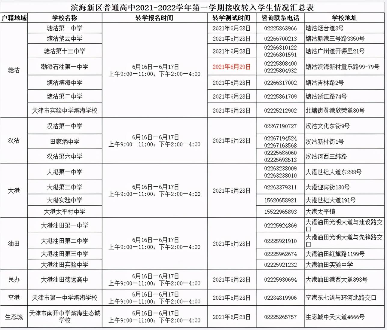 生态城:02267289022(教体局)、02266196632(外大滨海附校)