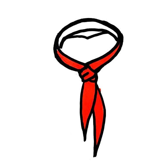 红领巾简笔画怎么画步骤二:我们在红领巾圆口下画出完整的红领巾,注意红领巾打结口交叉用菱形正方形表示就可以。