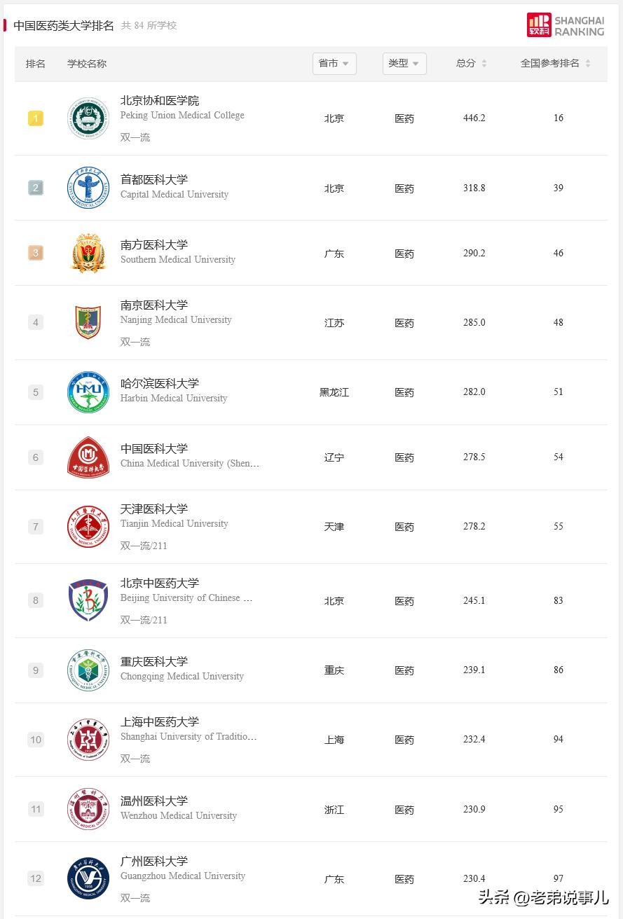 软科综合全国第97名,医药类大学全国第12名;校友会综合第121名
